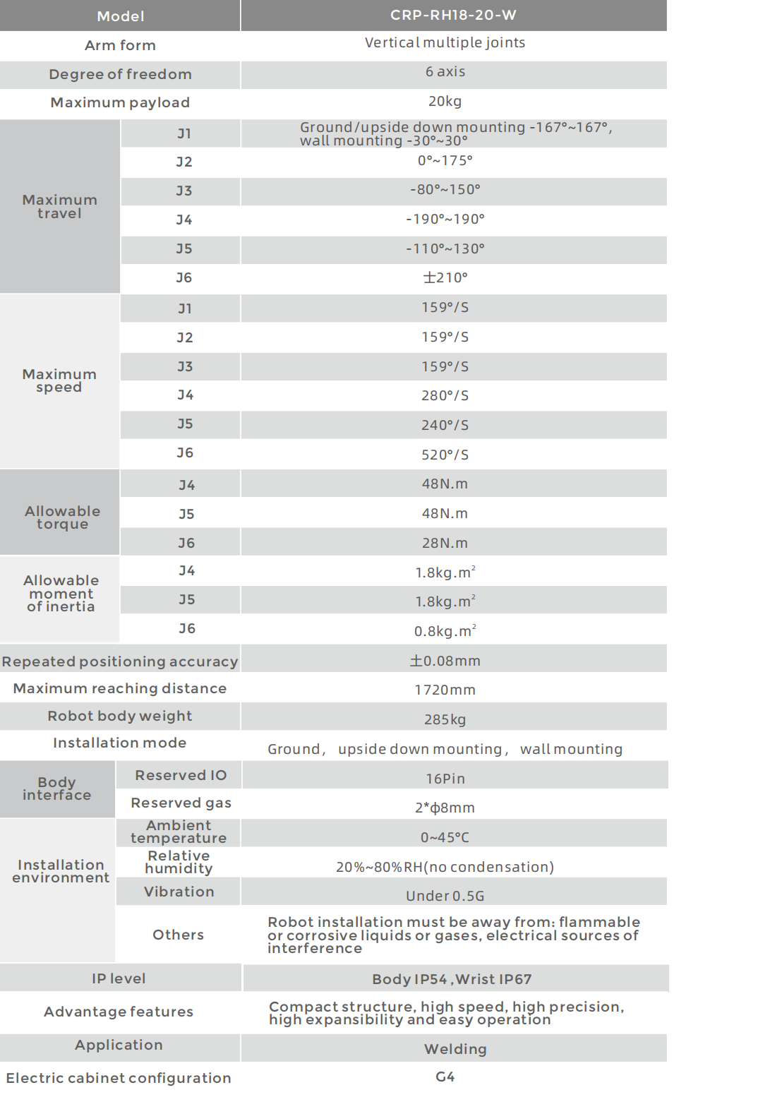 • With large working space, fast running speed and high repeated positioning accuracy, itis suitable for wide range of welding applications.
