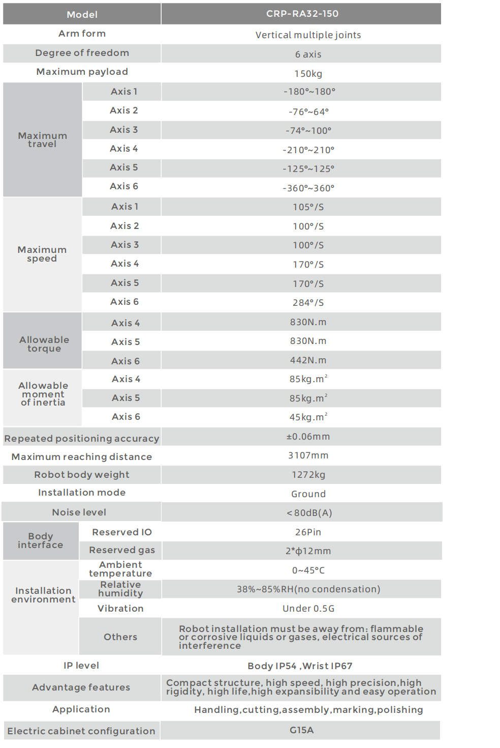 • The robot has simple structure, friendly operation interface and easy maintenance.
